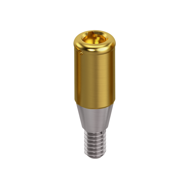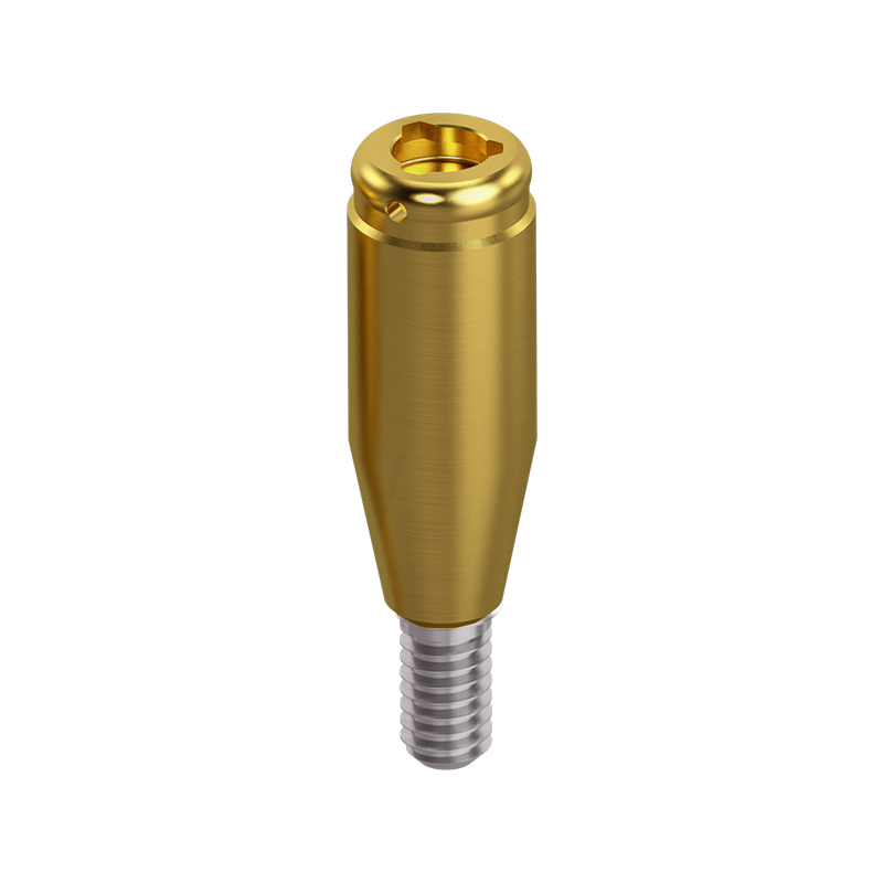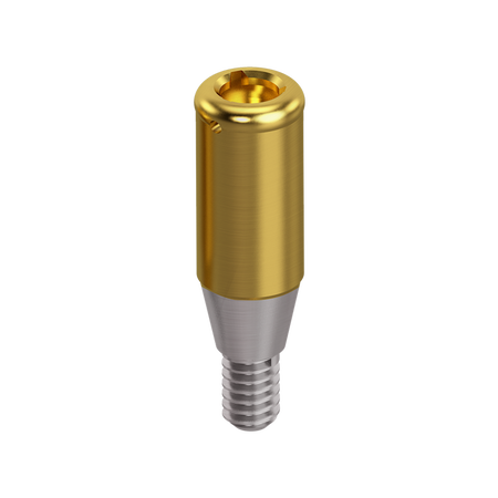 Premium quality OrangeClick™ Overdenture Attachment System abutment machined from grade 5 titanium with an industry standard Titanium Nitride coating for additional wear resistance.
